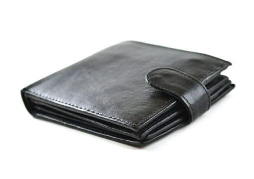 Exterior Details: Black Leather Men’s Bi-Fold Wallet