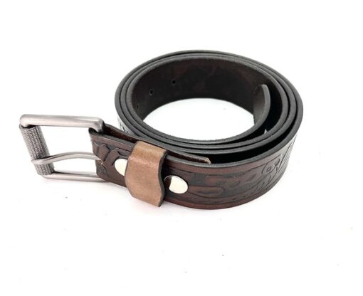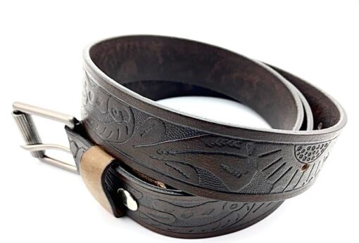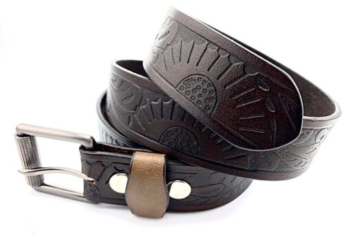 S-391 Brown Lether Engraved Print Belt